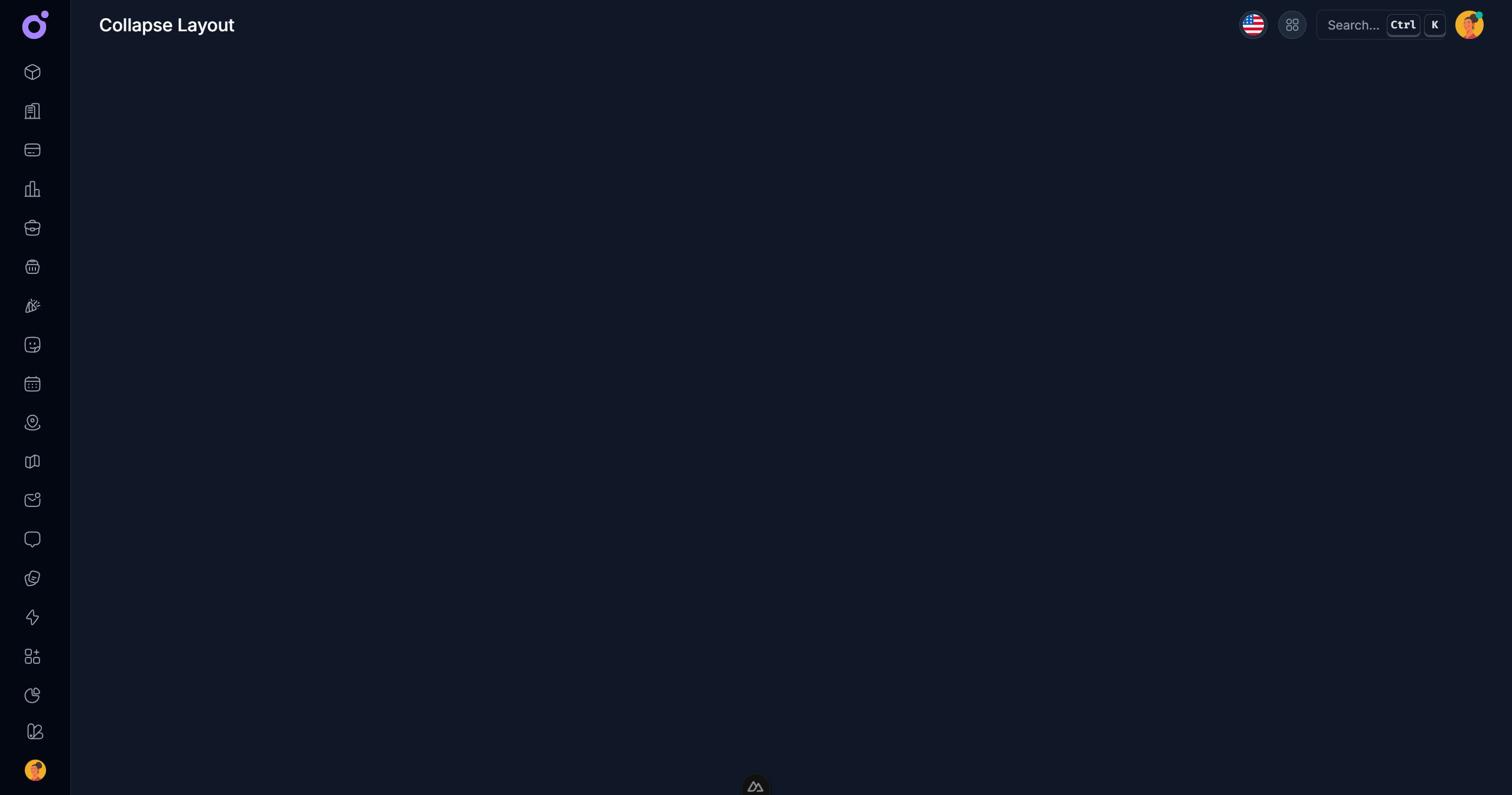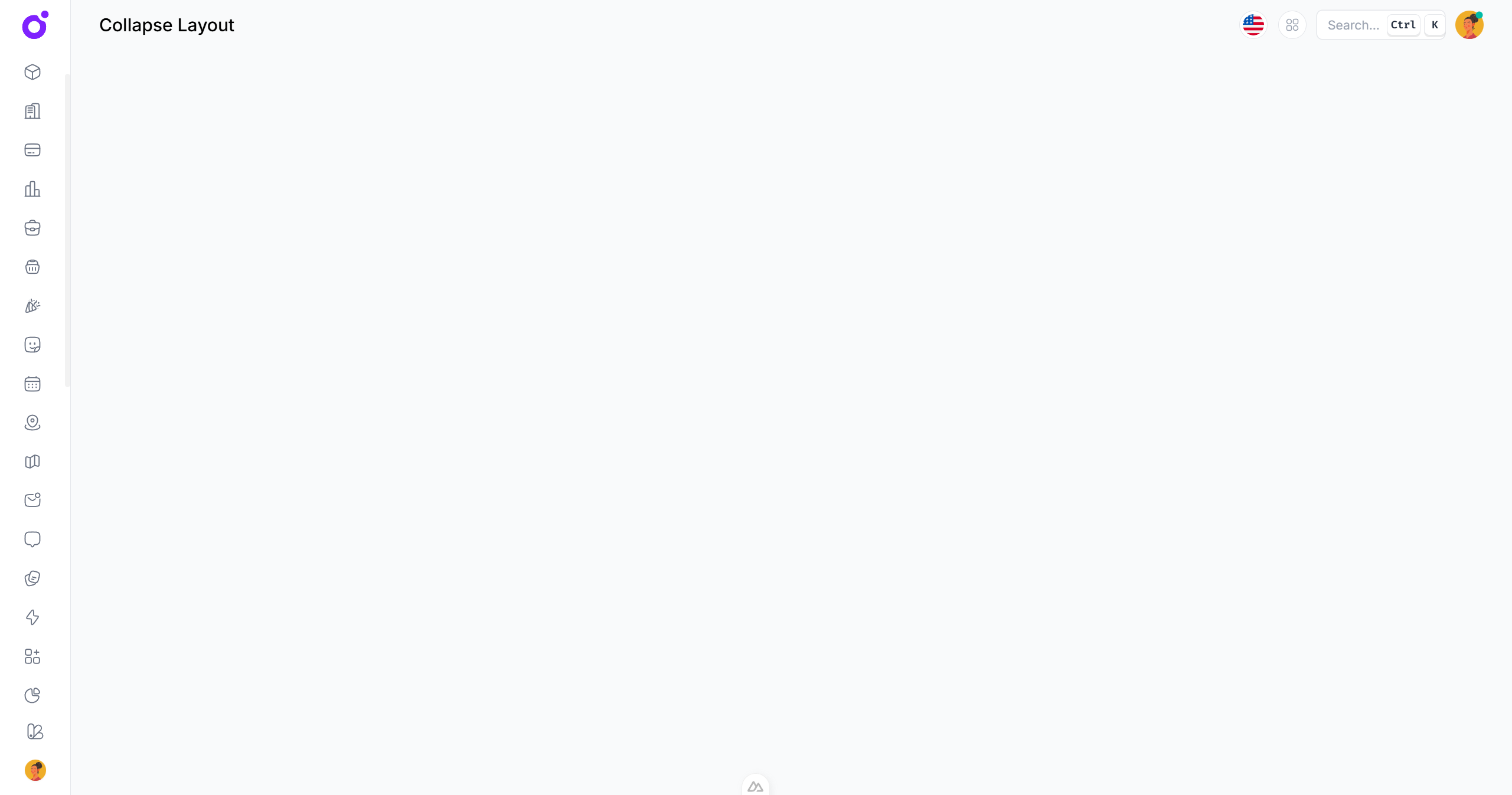 The collapse layout is a sidebar layout that can be collapsed or expanded. It is useful for applications that need to display a lot of information in a small space.